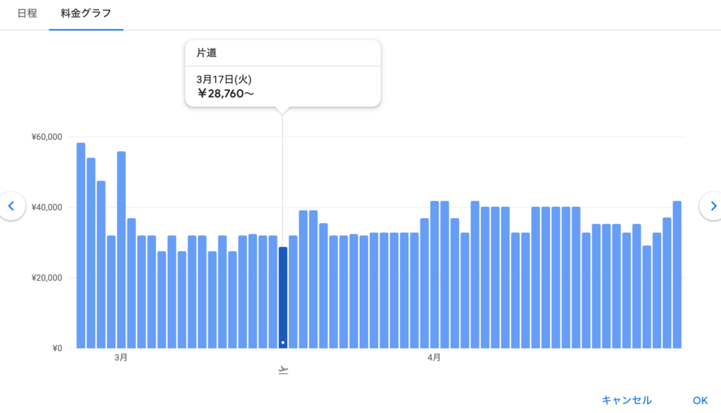 Step 1:Googleフライトで「安い日程」を特定する